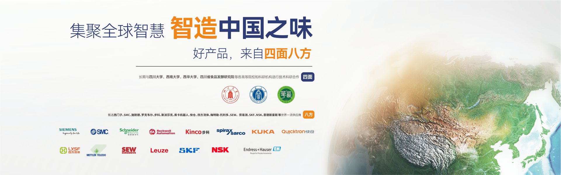 成都海科機(jī)械設(shè)備制造有限公司(簡稱:成都海科)是一家集研發(fā)、生產(chǎn)、銷售、服務(wù)為一體,專注為中國傳統(tǒng)食品行業(yè)提供自動(dòng)化、智能化、數(shù)字化、智慧工廠整體解決方案的國家級高新技術(shù)企業(yè)。公司擁有標(biāo)準(zhǔn)化辦公樓及現(xiàn)代化生產(chǎn)車間約42000m2,具有較強(qiáng)的綜合研制、設(shè)計(jì)開發(fā)、生產(chǎn)能力,具備嚴(yán)格的質(zhì)量管理體系和完善的售后服務(wù)體系。公司業(yè)務(wù)范圍覆蓋:復(fù)合調(diào)味品智能生產(chǎn)線、中式醬鹵肉制品智能生產(chǎn)線、醬腌菜智能生產(chǎn)線、智慧餐廚、央廚預(yù)制菜調(diào)理智能生產(chǎn)線,與海底撈、天味、九毛九、聚慧、楊國福、絕味、雙匯、新希望、無窮、烏江、吉香居、仲景、李記樂寶、Tyson、益海嘉里、開小灶、老鄉(xiāng)雞等眾多知名企業(yè)合作。截止目前,成都海科已經(jīng)助力超2000+企業(yè)順利投產(chǎn)5000余條生產(chǎn)線,為客戶創(chuàng)造年產(chǎn)值超1000億元!